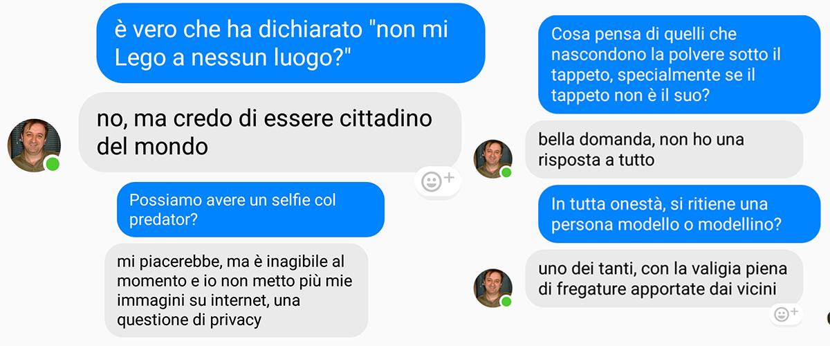 A questo punto, la prima puntata delle interviste senza peli sullo stomaco volge al termine. Come da italica tradizione marzulliana, si faccia una domanda e si dia una risposta